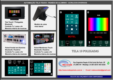 AUTOMAÇÃO - TELA TOUCH - BLUETOOTH - ACRILICOS - PAINÉIS